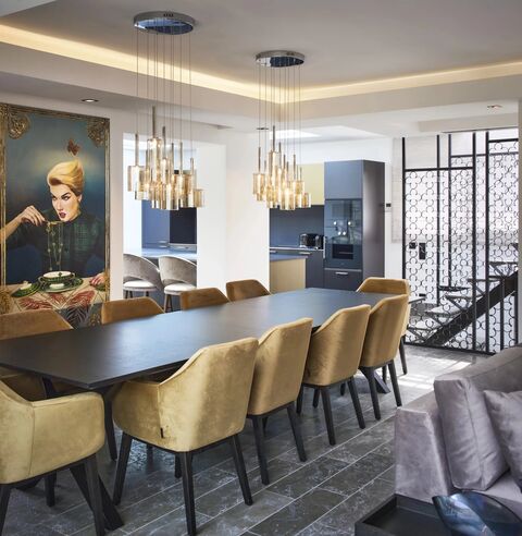 With an area of about 220 m2 on two levels comprising five bedrooms with en suite bathrooms on the ground floor, then on the first floor a magnificent living room of about 95 m2 with dining room opening on a large terrace of 59 m2 with barbecue offering a beautiful view of the pine trees and the sea, open kitchen fully equipped "high-end" with central plan. Solarium terrace with swimming pool and relaxation area complete this marvel. Villa sold turnkey with its furniture.