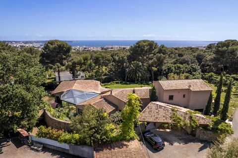 Situated in a confidential residential area of Antibes, in a dominant position at the heart of a 4,400 m2 landscaped garden with 1,400 plantations and 13 century-old olive trees, this property designed by architect Sauzet blends luxury and refinement.