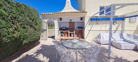 Unique villa set in a tranquil peaceful countryside location yet only a 5 minute drive and 2 km to Calpe town centre and beaches, This 2 storey villa is set on a beautiful plot of over 2000 square mt with panoramic views around this privileged location. As well as large sunny terraces with a 10mt X 5mt swimming pool and BBQ and shower areas there is a large orchard with an abundance of various very healthy fruit trees. The house has a very large double garage in the basement and ideal for those who like their own workshop etc, Ample parking for a t least 10 cars with easy access. Constant hot water via a new heat pump system and fitted with solar power. The main level of accommodation has 2 double bedrooms and master bathroom, separate kitchen with adjoining laundry, the large L-shaped lounge has a separate dining area and an understairs storage area. Large glassed in dining terrace being south facing overlooking the pool and orchard. Stairs lead up to a very light airy master bedroom with an en- suite bathroom and storage cupboard, there is entrance on this level to a large solarium with great countryside and coastal views.