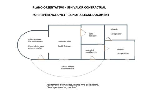 With direct access from the pool area, this charming guest apartment features one bedroom, bathroom with shower, open kitchen, and a cozy living-dining room with fireplace, perfect for hosting family or friends.