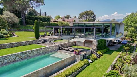 Located in the heart of a secure and highly sought-after private estate, this architect-designed property sits at the end of a quiet cul-de-sac with no overlooking, offering breathtaking views over the sea, surrounding hills and the village of Biot.