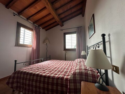 The interiors feature a separate kitchenette, a comfortable and bright living area, two bedrooms, and a windowed bathroom. An attic provides extra storage space. The home's cozy atmosphere and traditional finishes—wooden beams, terracotta floors, and stone details—make it ideal as a holiday home or peaceful countryside retreat.