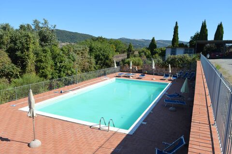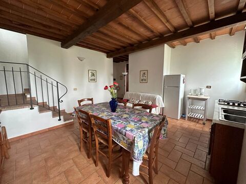 Residents also benefit from access to a shared panoramic swimming pool, overlooking the rolling hills and olive groves of the Volterra landscape. The setting combines rural tranquility with convenient proximity to the historic center of Volterra and major Tuscan destinations.