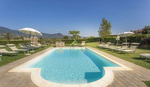 Nestled in the beautiful Tuscan countryside, just 10 minutes from the historic town of Cortona, we offer for sale a charming 500 sqm stone farmhouse. The property, masterfully renovated respecting local traditions, is currently divided into three autonomous living units: