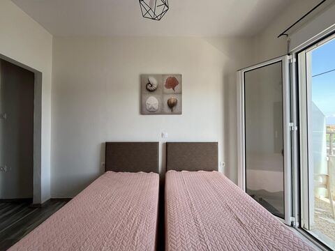 The bedroom is bright and benefits from direct access to a balcony, where you can enjoy views towards the sea and the surrounding village. The indoor and outdoor connection creates a pleasant living environment, especially during the summer months.