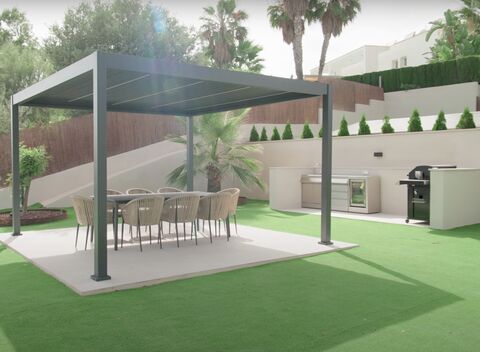 Ausserhalb des Schlafzimmers befindet sich ein Maschinenraum, der fur eine Waschmaschine vorbereitet ist. Drei Terrassen, darunter eine Sonnenterrasse mit Panoramablick, eine Aussenkuche und ein 26 m2 grosser Pool mit Filteranlage und Salzchlorinator. Eine weitere Terrasse hat eine Pergola, eine Aussenkuche und einen Grill. Die oberste Terrasse ist mit Sonnenkollektoren und Bepflanzung ausgestattet.