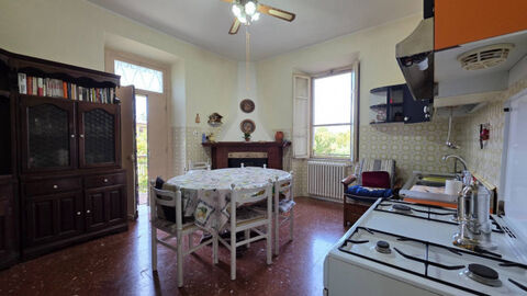 On the ground floor we find a large entrance hall, double living room, eat-in kitchen with fireplace, double bedroom and closet; an imposing marble staircase leads us to the upper floors, but halfway up the stairs are the two bathrooms, currently the only ones in the farmhouse.