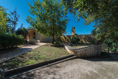Internally it is composed of: large living room, dining room with fireplace, eat-in kitchen with wood oven, bathroom, cellar and wooden porch. Through the internal staircase we go up to the sleeping area, made up of three double bedrooms, study, two bathrooms and balcony. On the sides of the Villa, there are two large terraces, one of about 40 square meters, the other of over 70 square meters with heights greater than four meters, entirely covered by a second wooden porch, with a second iron staircase that also leads externally to the ground floor.