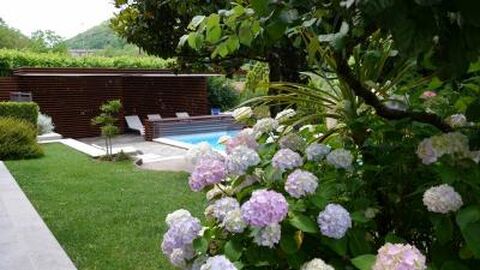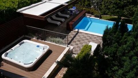 The Villa has a well-kept garden full of evergreen plants that offer shaded spaces on sunny summer days where you can enjoy relaxation and quiet by the pool or in the outdoor jacuzzi, sipping a drink.