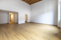 The rooms on the ground floor are of different sizes, for a total of over 600 square meters available. The apartments are divided into two two-room apartments, a three-room apartment and a four-room apartment for each floor.
