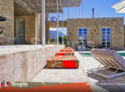 Located in one of the most sought-after and emerging areas of the Messinian Mani, in Agios Nikolaos (Lefktros), this exceptional newly built stone villa offers the perfect blend of privacy, high-end living, and breathtaking unobstructed sea views. Set on a 2,029 sq.m. plot, the property has a total living area of 260 sq.m. and consists of three independent buildings, offering flexibility, privacy, and multiple usage options. The first building features a ground-floor master bedroom with an en-suite bathroom and a small private kitchen, ideal for guests or independent use. The second building includes a ground-floor master bedroom with bathroom, a first-floor master bedroom with bathroom, and a basement used as storage space. The third and main building serves as the primary living area, featuring a spacious open-plan living room with kitchen, a master bedroom with en-suite bathroom, and an additional smaller room that can be used as an office or guest room, along with a separate bathroom. This building also provides direct access to the outdoor areas. The villa is equipped with autonomous heating via heat pump, underfloor heating, per-level heating system, and full air conditioning. It features wooden window frames, stone flooring, and an energy efficiency rating of B+. Bright, airy, and sun-filled, the property enjoys a northwest orientation and offers stunning panoramic sea views and spectacular sunsets. The outdoor area includes a landscaped garden with trees, a private 30 sq.m. swimming pool that fully meets leisure and entertainment needs, and a BBQ area, creating the ideal environment for relaxation and social gatherings. Additional features include storage room, office, water tanks, security cameras, internet connection, insect screens, and electrical appliances. The property is ideally located just 2.5 km from the nearest beach and 2.9 km from the village of Agios Nikolaos, while being approximately 5 km from the wider area center. It is also 55 km from Kalamata International Airport. This villa is ideal for a luxury holiday home, high-end rental investment, or Golden Visa opportunity. A rare opportunity for those seeking privacy, luxury, and breathtaking views in one of Greece's most authentic coastal destinations.