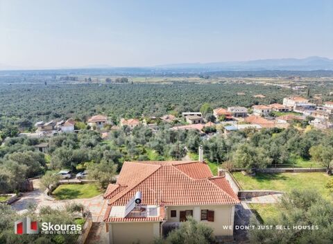 In a captivating natural landscape filled with olive groves and open horizons, in the privileged area of Aipeia in Messinia, an exceptional quality two-storey detached house with a total surface of 285.27 sq.m. is available for sale, set on a 4,000 sq.m. plot that offers a complete sense of freedom, privacy, and harmony with nature. The residence is characterized by careful construction, excellent condition, and a highly functional layout that allows it to be used either as a spacious family home or as two fully independent residences, thanks to both the internal and external connection of the levels. On the ground floor, there is an impressive and bright living area with an energy-efficient fireplace and an open-plan modern kitchen, where large openings allow natural light to fill the space, creating a warm and welcoming atmosphere throughout the day, while on the same level there are two comfortable bedrooms, one of which is a master suite, as well as a stylish high-specification bathroom. The upper floor features a similar layout with a living room, kitchen, and two additional spacious bedrooms, while from its large balcony one can enjoy unobstructed panoramic views of the Messinian plain and the unique sunsets that offer moments of relaxation and well-being. The outdoor area is carefully landscaped with paved surfaces, areas of lush green lawn, productive olive trees, fruit trees, and ornamental plantings, while the stone fencing and large automatic sliding gate enhance the sense of security and privacy. Additionally, it offers a closed parking space, a laundry-storage area, and the possibility of building a swimming pool, while modern equipment such as a heat pump, autonomous heating, air conditioning, solar water heater, alarm system, and full furnishing make the property immediately habitable. Its strategic location ensures quick access to the city of Kalamata, the airport, and the impressive beaches of the area, making it an ideal choice for those seeking a high-quality Mediterranean lifestyle or a remarkable investment opportunity.