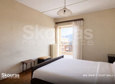 The apartment offers comfortable and functional spaces, consisting of two bedrooms, a living room, a bathroom, and an additional WC, providing a very good basis for renovation according to modern housing needs. Its dual-aspect layout makes it bright, airy, and sunlit throughout the day, while the views towards a square, park, urban landscape, as well as points facing the mountains and the sea, add an additional sense of openness to the space.