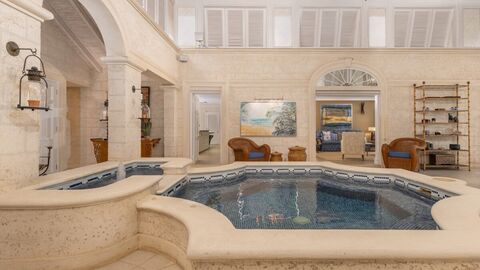 Outdoors, the estate continues to impress. A swimming pool, gazebo, and expansive entertaining terraces are set within lush tropical gardens, creating an atmosphere of relaxed sophistication. Ownership includes direct access to the Sandy Lane Old Golf Course and a private cabana at the Sandy Lane Beach Club - an exclusive privilege that enhances both lifestyle and investment appeal.