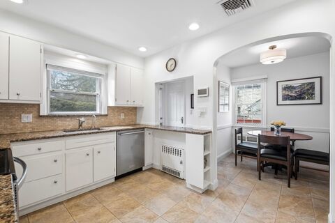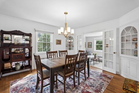 Beautiful, pristine Colonial sited on a magnificently landscaped, quiet corner property is all ready for you to move right in and enjoy. The main floor showcases a sundrenched living room with arched doorways, woodburning fireplace, charming built-in shelves and window seats. The formal dining room boasts an elegant chandelier, corner built-in cabinets and French doors which open to the family room, overlooking the inviting deck and blooming backyard. The updated eat-in kitchen features stainless-steel appliances, granite countertops and extensive custom cabinetry, and opens to the expansive deck. All bedrooms are nicely sized and the primary bedroom suite features three windows, double closets and a beautifully updated ensuite bath. The fabulous lower level provides 635 sq ft of bonus space ideal for playroom, gym and/or home office. A convenient walk-up attic offers incredible, easy-to-access storage space. Meticulous from top to bottom, the roof was replaced in 2019 and the entire e