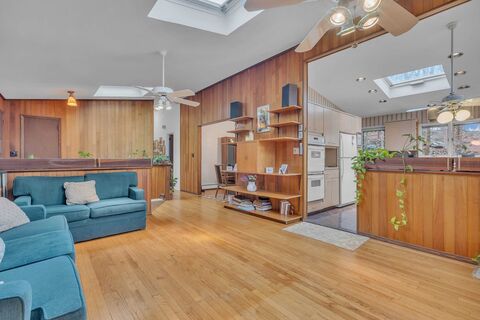 Modernist living meets woodland privacy. This unique Mid-Century Modern gem tucked away at the end of a meandering driveway lined with Belgium Block. Surrounded by 2.39 acres of nature, this home embraces the perfect setting tucked away but close to all! As you enter, youre greeted by a step down, dramatic sunken living room featuring surround windows that frame the outside and invites it in! Hardwood flooring awaits under the carpets!The open-concept flow continues into a cozy gathering space with a classic fireplace just off the kitchenideal for morning coffee or evening cocktails. A formal dining room, with a beautiful view of the outside, a full hall bath, three spacious bedrooms including the primary offering a large walk in closet and en-suite which is a true retreat! The lower level offers incredible versatility: a large recreation space, a dedicated home office, or yoga room, 4th bed plus sliders that lead directly to the yard. You'll also find a third full bath
