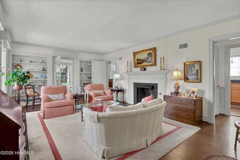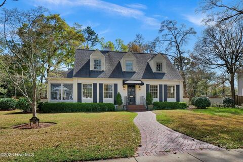 Step into a ''Southern Living'' dream with this meticulously maintained 1940s Cape Cod. Nestled in a lush landscape of blooming Dogwoods, Azaleas, and Camellias, this home perfectly blends historic character with modern peace of mind. Inside, you'll find hardwood floors, crown moldings, and custom built-ins. The heart of the home is a classic kitchen featuring warm wood cabinetry, sleek black granite, and a seamless cabinet-front refrigerator. Enjoy meals in the sun-drenched breakfast room. Above the two-car garage sits a large, private retreat--perfect as a playroom, dedicated home office, or a separate guest suite with its own half-bath. Main house currently configured as a 3 bedroom with a downstairs den that could easily be converted to a 4th bedroom.With a whole-house generator, a well-fed sprinkler system, this rare find offers unmatched convenience. Just 10 miles from Wrightsville Beach, 2.5 miles from Downtown Wilmington and The Hospital.