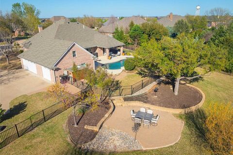 1 story true custom home in popular Seis Lagos! Lovejoy Schools! Nestled on .68 acres in a gated and guarded premier development and features engineered wood floors, custom built-ins and designer colors. Circle drive and side entry garages with bonus parking. Separate living area has corner fireplace and could be a game or media room. Spacious family room with stacked stone fireplace and tray ceiling. Updated island kitchen has rich quartz counters, stainless steel appliances, custom 5 burner gas cooktop and tons of storage. Elegant formal dining area. Private primary suite and luxurious bath withseparateshower. Huge laundry with cabinets and sink. Large ensuite secondary bedrooms.Backyard oasis features a custom pool and spa, covered extended patio, iron fencing around the pool and extra decking perfect for entertaining. Hard to find custom 1 story in Lovejoy Schools with all the extras is truly an amazing property!
