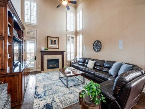 Tucked away on a desirable interior street and backing to a peaceful greenbelt, this stunning Preston Lakes home offers space, style, and exceptional livability. Beautiful front yard landscaping creates wonderful curb appeal and sets the tone for what awaits inside. Featuring 4 bedrooms, 4 bathrooms, a private office, game room, and media room, this home provides incredible flexibility for both everyday living and entertaining.The dramatic two-story living room is the heart of the home, showcasing soaring ceilings, elegant built-ins, a gas fireplace, and views of the backyard deck. The kitchen is well-appointed with stainless steel appliances, a gas cooktop, breakfast bar, and walk-in pantry. The front-facing office offers a quiet and bright work-from-home space.The secluded downstairs primary suite features a spacious sitting area, an ensuite bath, and an oversized walk-in closet. Upstairs youll find a large game room, cozy media room with state of the art technology, and thr