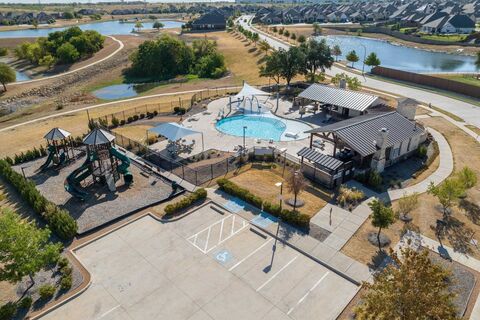 Beautiful Drees home offering approximately 3,256 sq. ft in the highly sought after Seventeen Lakes community & in the top notch Northwest ISD is ready for you to call home. Situated on a large corner lot, nice size backyard with two apple trees, pear & grape trees this four bedroom, three full bath and half bath showcases beautiful wood floors and an open layout. Step out your front door and walk a few steps to a gorgeous lake to take in sunrises or sunsets as well as catch glimpse of nature throughout the seasons. The eat in kitchen w stunning granite countertops, a center island, and a custom wine bar, all flowing into the family living room which is perfect for entertaining. A stone fireplace with a cedar mantle adds warmth and character. The downstairs primary suite features a bay window sitting area, a spacious bathroom with separate vanities, separate shower, jetted tub, and a walk in closet. Upstairs offers three additional bedrooms, including one with an ensuite bath, along wi