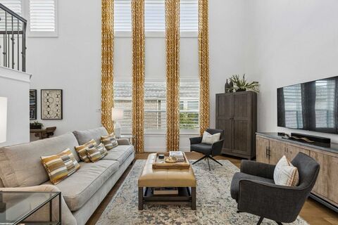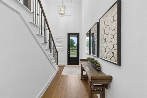 Welcome to luxury living in the award-winning Harvest community in Argyle ISD! This stunning former Highland Homes model offers 4 bedrooms, 3 baths with impressive designer upgrades throughout. Custom window treatments highlight the soaring ceilings, creating a bright and elegant living space. The open-concept floor plan features upgraded wood flooring, custom paint, and 36 in cabinetry with lighted glass accents. Additional upgrades include beautiful quartz countertops, an extended primary suite, a spacious extended patio, and an oversized garage with approximately 6 extra feet, perfect for storage or workshop. The backyard might just be the best feature. A pollinator garden will memorize as the monarch butterflies flutter in or harvest fresh vegetables from your own garden-to-table space. This beautiful patio home offers incredible value with numerous items conveying, including the refrigerator, washer and dryer, TVs with mounts, Elfa office system, garage storage racks, and al