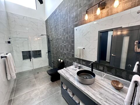 The Oceanfront Villa features three comfortable bedrooms and four bathrooms. Thoughtfully designed to capture natural light and the refreshing ocean breeze. Each space blends comfort with elegance, creating a relaxing coastal atmosphere.