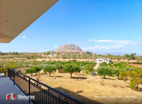 This impressive 313 sq m detached house in Examilia, Corinth combines luxury with absolute serenity, built on a privileged 4,462 sq m plot with 31 olive trees, citrus trees and ornamental plants. The house extends over three levels using high quality materials (marble, wood), offering spacious spaces and 4 bedrooms, while the semi-basement can function as a fully independent residence. The outdoor areas are ideal for entertaining, with a large covered BBQ and a comfortable covered garage. The property offers a unique residential experience thanks to its unobstructed panoramic view, extending from the clear blue waters of the sea and the surrounding mountains to the imposing rock of Acrocorinth. It is an ideal choice for those looking for a quality permanent or holiday home with great potential for development (Golden Visa), a short distance from the city and the beach.