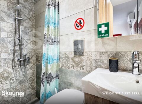On the 6th floor of a well-maintained apartment building, in one of Patras' most rapidly developing areas, Skagiopouleio, lies an investment apartment that stands out from the typical studios on the market. The door opens, and you immediately realize the space was designed with intention. The full renovation in 2025 wasn't just an aesthetic refresh; it was a total quality upgrade. Modern materials, clean lines, proper ergonomics, and smart utilization of every square meter. The living area welcomes you with a modern vibe. Red and grey tones create intensity and character, while large openings bring in natural light throughout the day. The kitchen area is fully equipped with modern appliances and a functional countertop. Everything is ready for use, requiring no further investment. The discreet layout of the sleeping area offers privacy without sacrificing the open-plan feel. Aluminum frames with double-glazed thermal break windows and waterproofing ensure comfort year-round. The 12,000 BTU air conditioner with Wi-Fi control completes the modern living experience. The true advantage, however, is revealed on the terrace. The view opens up panoramically before you. The city stretches to the horizon, from the Patras Fortress to the endless blue of the Ionian Sea. A setting that turns daily life into an experience. The location is ideal. Just minutes from the city center, close to the university, hospital, sea, market, and public transport. Whether for student housing or short-term rental investment, this property combines immediate yield with the potential for capital appreciation. This is a complete investment proposal. A turnkey property with clear investment logic, high yield potential, and a strong identity. A space that doesn't require imagination to see it working; it only requires a decision.