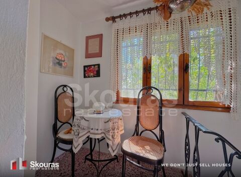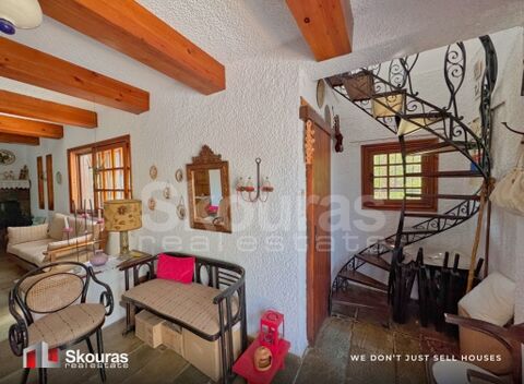 The house is surrounded by lush, well-maintained surroundings with abundant tree planting, ideal for moments of relaxation, joy and absolute tranquility, enjoying the sunny days of Greek nature.