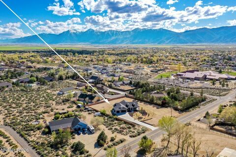 Fantastic view of the Sierra from this desirable Minden location. Watch the setting sun dip behind the Carson Range from one of two Southwest facing patios. The front of the home boasts a third, cover