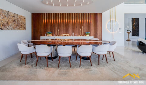 This 956 m2 villa, built on three floors, set on a 6,859 m2 plot, features an entrance hallway, an open-plan lounge areas, including a TV room with fireplace, and a formal dining room, a modern, fully fitted and equipped kitchen with an island and breakfast space, a laundry room, six bedrooms, six bathrooms (all en-suite), a basement with a games room, bar, wine cellar, private cinema, gym with Turkish bath, two additional suites, ample storage, and a garage for five cars, private swimming pool, several terraces and balconies, barbecue and Al Fresco dining spaces, fou-car carport and gardens. Layout Entrance hall Open-plan living and TV room with fireplace and dining room Modern fitted kitchen with island and breakfast space Eight bedrooms and eight bathrooms Basement, games room, bar, wine cellar, private cinema, gym with Turkish bath, ample storage, five-car garage Outside Private swimming pool Sun terraces, balconies and a covered dining area BBQ zones Four-car carport, parking Gardens Location Located in the prestigious Pinhal Velho area of Vilamoura, within a short distance to all amenities, the beach and Vilamoura marina. At a glance Three-storey 956 m2 build, 6,859 m2 plot Built in 2020 Eight bedrooms, eight bathrooms Basement, games room, bar, wine cellar, private cinema, gym with Turkish bath, ample storage Pool, terraces, balconies, covered dining, BBQ Four-car carport, five-car garage Gardens