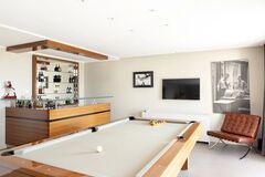 im Erdgeschoss befinden sich ein Schlafzimmer mit eigenem Duschbad sowie ein Arbeitszimmer und ein Billardzimmer mit Bar, das zu einem zusatzlichen Schlafzimmer umgestaltet werden kann.
