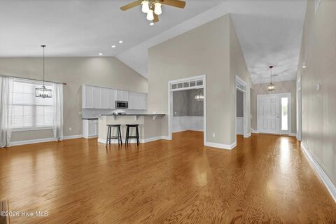 Welcome to this immaculate 4-bedroom, 3-bath home located in the highly sought-after golf community of Castle Bay. Offering 2,468 square feet of thoughtfully designed living space, this home showcases beautiful hardwood flooring, new carpet, soaring cathedral ceilings, recessed lighting, plantation shutters, a whole-home water softener, and a 2023 fortified roof. The designer kitchen is a true centerpiece, featuring 42'' custom cabinetry, a stylish subway tile backsplash, granite countertops, and newer appliances, perfect for both everyday living and entertaining. The inviting living room is anchored by a cozy propane fireplace and flows seamlessly into the kitchen, creating an ideal space for gatherings or relaxing evenings at home. The elegant formal dining room is highlighted by detailed wainscoting, transom windows, and designer lighting, adding a touch of sophistication. Retreat to the stunning owner's suite, complete with hardwood floors, cathedral ceilings, and a spa-like bathro