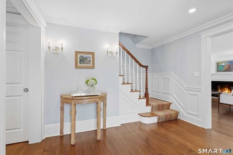 This is the One! A beautifully updated four-bedroom Colonial set on a quiet street in coveted North Darien, offering the perfect blend of classic charm and modern living. The home features gracious formal spaces including a sun-filled living room, elegant dining room, and inviting den. At the heart of the home, a stunning updated kitchen opens seamlessly to a spacious family room, creating an ideal layout for everyday living and entertaining. A playroom and dual home offices provide the flexibility today's buyers are looking for. Perfectly positioned on the Wee Burn Country Club, the property enjoys sweeping, picturesque views that set it apart. Outdoor living is just as exceptional, with a beautifully designed stone patio featuring sitting walls and a fireplace-perfect for gathering year-round-plus a large, flat yard ideal for play and recreation. A detached three-car garage is complemented by a fantastic space above-perfect as a media room, private office, or creative studio. A ra