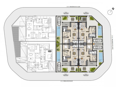 Exklusive, ebenerdige Doppelhaushalften im mediterranen Stil mit privatem Pool in ruhiger Lage im El Alba Mediterranean Resort in Torre Pacheco.