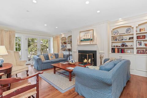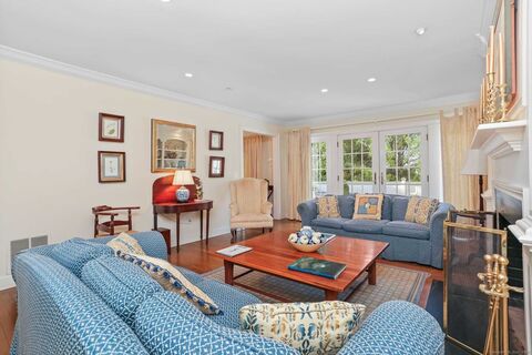 This spacious 3 bedroom, 2 full & 2 half bath townhouse offers luxury, care free living within an easy walk to the quaint New Canaan village with a variety of restaurants, train station, parks and more. There is a living room with fireplace, separate dining room, cozy study and lower level family room. There are two garages - one is just a few steps from the residence. Prides Crossing has a private swimming pool and large clubhouse. Ask the listing agent for explanation of water usage for irrigation system.