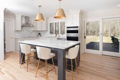 Welcome Home! Privately set at the end of a cul-de-sac on 1.10 level acres, this light-filled Contemporary offers the perfect blend of space, style, and tranquility just minutes to town. A true showpiece, the fully renovated kitchen and mudroom feature abundant custom cabinetry, stainless steel appliances, quartzite countertops, and an oversized center island, all bathed in natural light and designed for both everyday living and entertaining. Soaring ceilings and walls of windows create an airy, open feel throughout the main level, complemented by newly refinished hardwood floors. Sliders lead to a spacious Trex deck overlooking the expansive, level backyard--rare for the area and ideal for play, gatherings, or simply enjoying the surrounding privacy. The family room with fireplace, formal living and dining areas, and updated powder room complete the main level. Upstairs, the primary suite offers vaulted ceilings, walk-in closet, and full bath, along with three additional bedrooms, hal