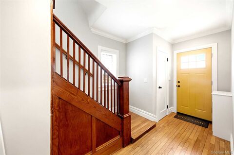 Welcome to 9 Harding Ave, Yonkers, NY 10704. A beautifully renovated Colonial that perfectly blends timeless charm with modern convenience.Move right into this turnkey home featuring a welcoming front porch, ideal for morning coffee or relaxing evenings. Step inside to an inviting entry foyer with a convenient powder room, leading to a bright, open-concept dining area and updated kitchen with direct access to a private backyard, perfect for entertaining. The cozy living room showcases a classic wood-burning fireplace, adding warmth and character.Upstairs, youll find a spacious primary bedroom, two additional well-appointed bedrooms, and a luxurious full bathroom complete with a soaking tub and a separate walk-in shower.The finished lower level offers incredible versatility with an open layout ideal for a recreation room, guest suite, or home office. This level includes a Murphy bed, sauna, laundry area, utility room, and a large storage space.Outside, enjoy a beautifully fenced ba