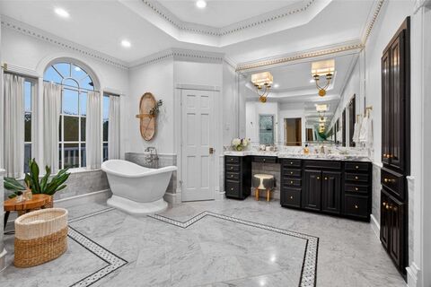 Experience elevated living in this impeccably designed 5 bedroom, 5.1 bath estate offering 6,404 square feet of refined elegance in the heart of Dallas. Thoughtfully curated with timeless architectural details, this residence blends sophistication with modern functionality. The 5th bedroom is cureently being used as an office.Inside, rich wood flooring, a dramatic herringbone entry, and elegant arched doorways set the tone for the homes elevated aesthetic. The gourmet kitchen is a true showpiece, featuring Arabascatto Belgian stone countertops, a spacious island, La Cornue 5-burner range with pot filler, Sub-Zero refrigerator, two KitchenAid dishwashers, two Kohler sinks, and a built-in Miele coffee maker. Additional highlights include a walk-in pantry, glass-front cabinetry, a built-in desk, and a seamless coffee bar with brass accents. A wet bar with wine cooler and ice maker enhances entertaining.The family room showcases a wood-burning fireplace with gas starter, built-ins, an