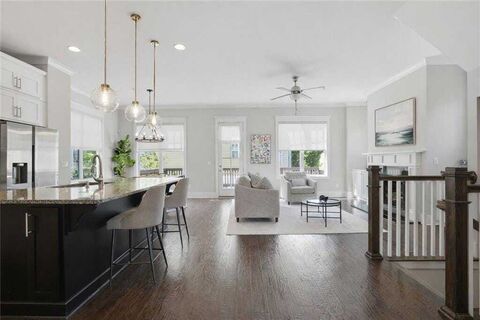 Live in the heart of Marietta, just steps from the vibrant Historic Marietta Square. Imagine having some of the areas best restaurants, shops, and community events right outside your door, along with beautiful gathering spaces, a clubhouse, and a private pool. Welcome to 230 Meeting Street.Perfectly situated in the sought-after Meeting Park, this beautifully updated residence blends effortless living with exceptional craftsmanship. Inside, youll find a light-filled, thoughtfully designed interior featuring designer paint, rich hardwood floors, custom finishes, and stunning views of the Historic Marietta Square.The inviting covered front porch opens to a welcoming foyer. On the main entry level, a guest bedroom and full bath offer privacy and flexibility for visitors, multigenerational living, or whatever need you have. Upstairs, the open-concept main living area is bright, spacious, and designed for both everyday comfort and entertaining. The beautifully appointed kitchen featu