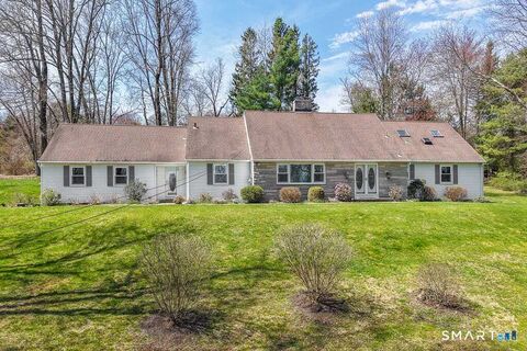 Timeless charm greets you upon your arrival at this graceful Cape Cod-style home, with elements of Colonial architecture, that has 5 bedrooms, 3 full bathrooms, 2 half bathrooms, and approximately 3454 sq ft of finished living space. Located on a cul de sac, the home is conveniently located in Central Woodbridge and is majestically sited on 1.66 acres. At the front entry, you'll note the home's elegance and spacious layout. There is a living room to sit comfortably with guests and share the enjoyment of a gas fireplace. There is a adjoining dining room for more formal entertaining which leads to a spacious updated kitchen that has granite counters, lots of cabinet space, 2 pantry closets, a large center island (w/seating), an eat-in area and newer stainless steel appliances. One side of the kitchen leads to a mud room area (with washer & dryer & half bathroom), that enters into the attached 2 car garage. The other side of the kitchen leads to a stunning family room w/ a wood burning fi