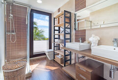 This exclusive detached villa represents an excellent opportunity for those who value absolute privacy and space without sacrificing proximity to the coast. Set on a generous private plot of 1,605 sqm , the property stands out for its layout across three independent structures: a main residence, a self-contained guest house, and a large garage. Its orientation and elevated position guarantee a constant flow of natural light and unobstructed views that beautifully combine the mountain landscape with the Mediterranean Sea.