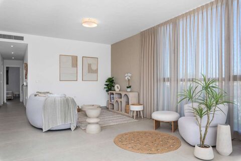 Brand new project of only 32 high quality flats with communal swimming pool, including underground parking and storage room, only 400m from the beach in Mar de Cristal.The properties consist of 2 and 3 bedroom apartments with spacious patios and direct access to the pool and the penthouses include a private solarium. Both the 2 and 3 bedroom models have a spacious front with large doors that let in plenty of light, an open plan kitchen, dining and living room leading directly onto the main terrace. The spacious master bedrooms each have a large dressing room and a large bathroom. The rest of the accommodation consists of a shared bathroom, 1 or 2 guest bedrooms and a separate laundry room. The developer creates these spacious flats with a high quality appearance, both in terms of modern design and quality of finishes, furnishings and fittings.The luxury residential complex is located in a quiet and exclusive urbanisation, surrounded by beautiful gardens and green areas. The homes have 3 spacious and bright bedrooms, all equipped with fitted wardrobes and high ceilings for a feeling of spaciousness. At the heart of the development is a stunning communal swimming pool, surrounded by sun loungers and parasols, ideal for relaxing and enjoying the warm Mediterranean sunshine, this development offers a luxurious and tranquil lifestyle, ideal for those seeking privacy and comfort in a dreamlike setting.The interiors of the homes are bright and welcoming, with large windows that let in natural light and offer stunning views of the gardens and the sea. The high ceilings and white walls create a spacious and fresh atmosphere. The residential unites and combines comfort, brightness and good finishes with high-end materials to create a welcoming and luxurious atmosphere.islas Menores, located on the Mar Menor in the municipality of Cartagena, is one of the most charming towns on the Costa Calida. With its relaxed, family atmosphere, this coastal area offers beaches with calm, warm waters, perfect for enjoying the sun and sea all year round.The area has a small marina and a leisure offer that combines water sports, hiking and typical Mediterranean gastronomy. its proximity to La Manga and the Calblanque Regional Park allows access to unique natural landscapes and a wide variety of services without losing the essence of a traditional coastal town.With a privileged climate and a welcoming community, islas Menores is an ideal destination both for a second home and to enjoy the tranquillity by the sea all year round.