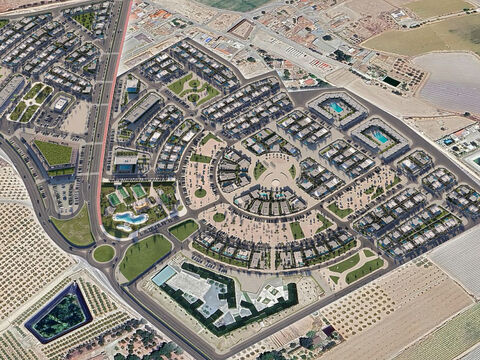 Neue exklusive Entwicklung von modernen einstockigen Doppelhaushalften und Reihenvillen mit Solarium und privatem Pool in der exklusiven El Alba Anlage in Roldan (Murcia).