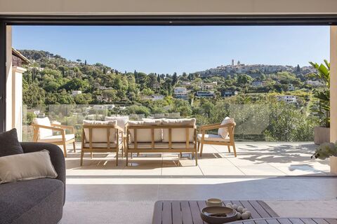 This property, fully renovated in 2026, enjoys exceptional panoramic views over the village of Saint-Paul de Vence. it stands out for its generous volumes, natural light, and high-quality finishes.