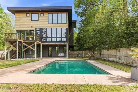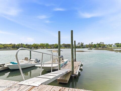 Experience the best of coastal living just steps from Pages Creek. This modern style home is designed for both relaxation and entertaining. A saltwater pool and deeded boat slip are perfect for enjoying time on the water with easy access to the Intracoastal Waterway. The boat slip is a short walk along a private path for homeowners and guests. All of this and still just minutes from local beaches, shopping and dining. Inside the home, features include an open layout with a recently enclosed sunroom, an elevator shaft, two separate office spaces and plenty of natural light. The kitchen boasts a built in oven, induction cooktop, a custom concrete countertop and a large walk in pantry. On the third floor, the main bedroom has views of the pool and the bathroom features double vanities with a concrete top, soaker tub, walk in shower and a custom closet. The detached garage offers an ideal spot to store all of your beach gear or can be used as a workshop. Recent updates include fresh paint