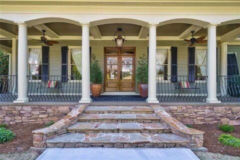 LARGE LAKEFRONT HOME IN ONE OF PEACHTREE CITY'S MOST PRESTIGIOUS COMMUNITIES! 151 feet of lake frontage and rare walk-in access. 115 Peninsula Drive is a remarkable private, tranquil oasis, which offers panoramic views of Kedron Lake and the most spectacular sunrises and sunsets. The main floor features a large open floor plan with a grand foyer, formal dining room with butlers pantry, and fireside study/library. The stunning kitchen boasts a large center island, custom cabinetry, walk-in pantry with dumb waiter and high-end appliances which overlooks the living room with wood burning fireplace. Two spectacular porches flank the breakfast room-the first, is screened-in with a stacked stone fireplace for cool evenings and the second offers expansive views of the backyard and lake. The main floor owner's suite features a fireplace, sitting room and large walk-in closet with custom cabinetry that extends into the en-suite bath where a soaking tub, separate shower, and tons of storage ar