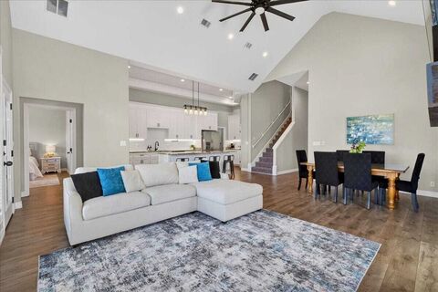 Welcome home to your stunning 3-bedroom, 2-bathroom lakeside retreat located in the heart of East Texas on Cedar Creek Lake. With 50' of waterfront and wide open water within view, this home was made for entertaining. Step inside to a grand living room boasting 17-foot cathedral ceilings, accentuating the open floor plan. The spacious kitchen is a chef's dream, featuring a huge island with bar seating, stainless steel appliances, and granite countertops. All bedrooms are conveniently located downstairs, offering comfort and ease of access. The primary bathroom offers a spa-like retreat with a sleek, modern design and elevated finishes throughout. Enjoy a large walk-in shower with frameless glass, designer tile surround, and matte black fixtures for a clean, contemporary look. The dual-sink vanity features striking granite countertops, ample storage, and a dedicated seated makeup area. High ceilings and abundant natural light enhance the open, airy feel, while thoughtful details creat