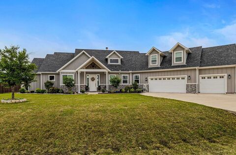 Experience the best of Texas country living on acreage with this stunning modern farmhouse-style home on 1.3 acres, NO HOA, just minutes from DFW metroplex. This move-in ready home offers the perfect blend of privacy, space, and convenience, making it ideal for buyers searching for homes with land near Dallas-Fort Worth.This 3 bedroom, 2.5 bath home with 2 offices and a large media-game room features a highly desirable open floor plan with split bedrooms, perfect for both everyday living and entertaining. The spacious living room showcases a striking Austin stone wood-burning fireplace with custom built-ins, creating a warm and inviting focal point.Chef's dream kitchen is designed for gatherings, with granite countertops, stainless steel appliances, oversized island, decorative lighting, and extensive luxury vinyl wood flooring throughout main living areas.Work from home with ease thanks to dual office spaces with built-in desk, while the flexible media room or game room is ideal