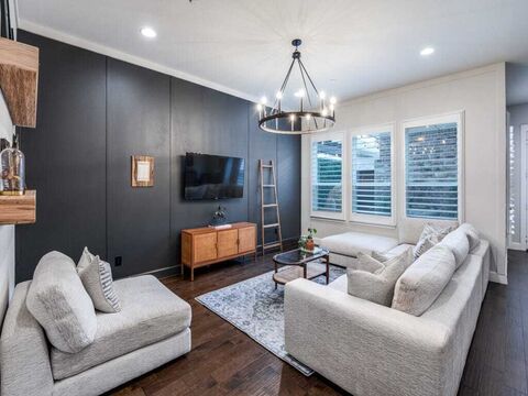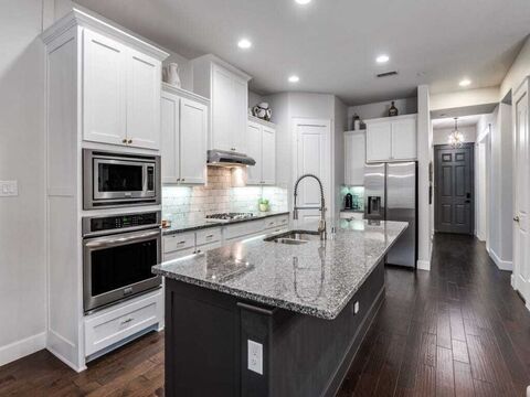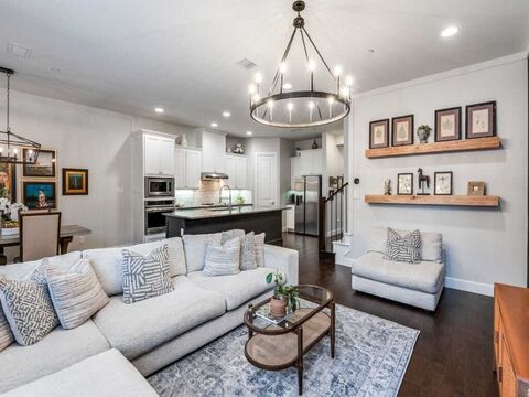 Loaded with upgrades and thoughtfully updated throughout, this stunning 3-bedroom, 3-bath townhome with a private office, formal dining, and outdoor living offers a level of finish far beyond expectations. The list is long and includes new roof (2025), garage door (2025) 4 inch plantation shutters, Tesla Charger in garage, Custom Closets by Design, Secondary Bathroom remodel (2026) and much more!The main level features a private office with elegant French doors and a spacious formal dining roomcurrently utilized as a second home officeproviding exceptional flexibility for todays lifestyle. The open-concept kitchen boasts a large island and overlooks a generous living area complete with hardwood floors and a stylish accent wall. An additional office nook and a private patio create even more versatile living and work-from-home options.Upstairs, retreat to the expansive primary suite featuring a beautifully appointed ensuite bath and a custom closet by Closets by Design. Two ov